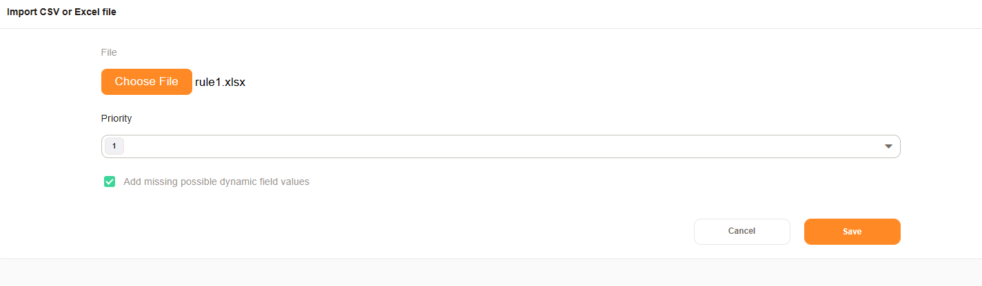 Upload the Excel/CSV relations files and set the checkmark for “add missing possible dynamic field values”.