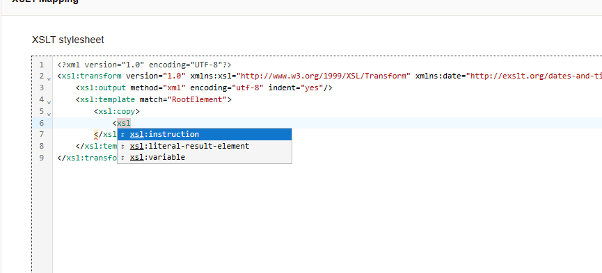 Znuny provides data modification with XSLT. It’s then possible to modify the incoming and outgoing data for provider and requester operations. It provides syntax highlighting, code completion, and validation features to help you write correct XSLT code. After adding the XSLT option, and saving the provider or invoker configuration, you can than edit the XSLT code in the editor.
