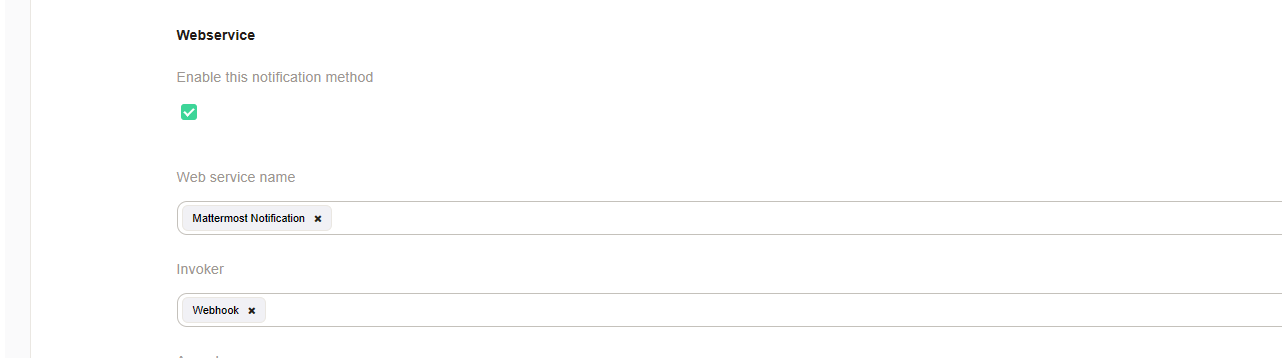 Select Mattermost notification and click on the button below to import the predefined web service.