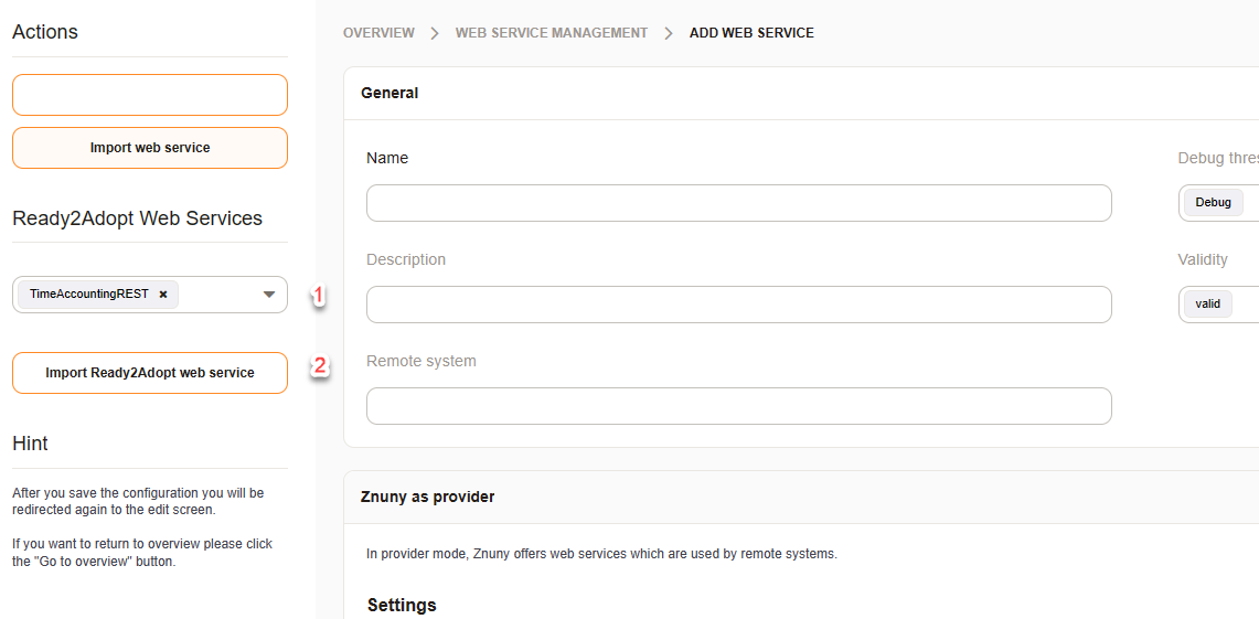 There is a web service ready when you add a new web service. You might choose between REST and SOAP as transport method:
