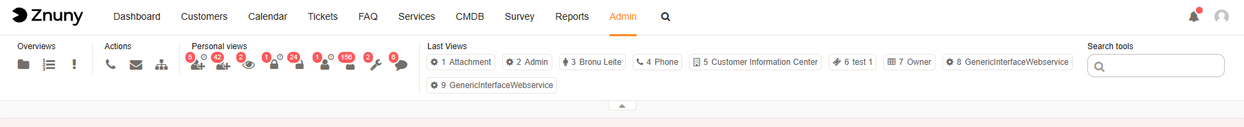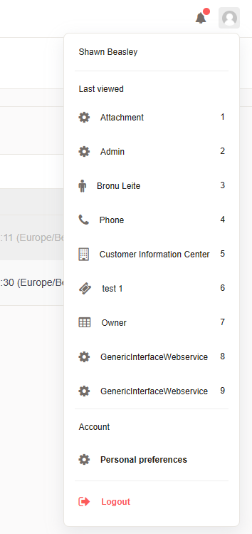 Last views is a feature to give agents a quick access to recently used objects. It is build for power users, to enable fast context switches between the several tickets.